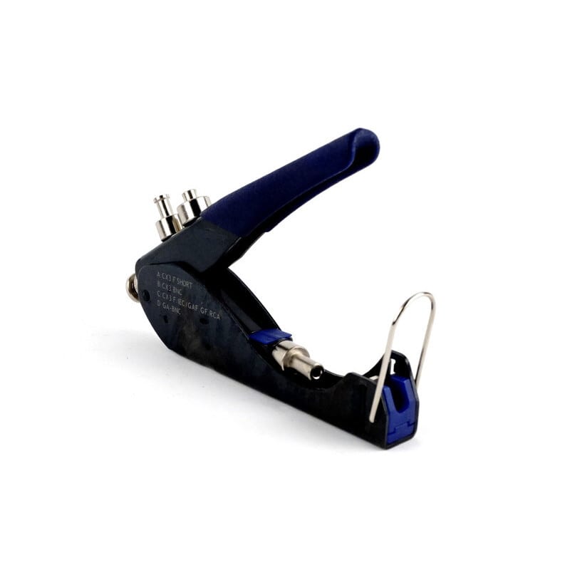 Kompressiotyökalu RG6, RG59, Tellu13 ja mini-kaapeleiden liittimille.