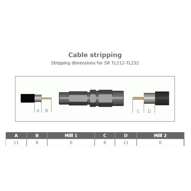 True Lock vaihtoliitin Tellu7-kaapelista RG11T-kaapeliin.
