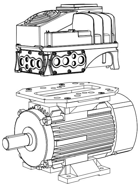 VACON 100 X asennuslevy, taajuusmuuttajan asennukseen suoraan moottorin päälle