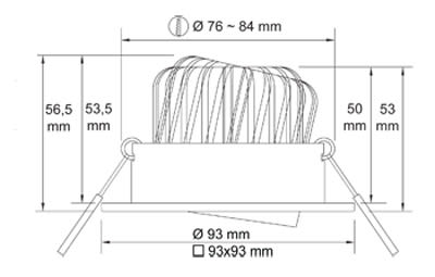 Upotettava Downlight Cob LED. Säädettävä valaisinkotelo 0 – 25°. Hajontakulma 30o. Hyvin matala rakennekorkeus. Runko valkoista tai teräksenväristä painevalettua alumiinia. Lukkojouset terästä. Toimitetaan Osram-laitteen ja pikakytkentärasian kanssa. Outdoor-versiossa E7701324 on ylimääräinen pintakäsittely korroosiota vastaan. Sopii sekä 76 että 84 mm:n reikiin. IP44, 10W Cob LED, luokka II