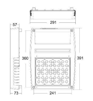 Runko integroiduilla jäähdytysrimoilla korkeapainevalettua alumiinia, yläkansi terästä. Liitin on jauhemaalattua hopeanharmaata RAL 9006. Suojalasi läpinäkyvä akryyli (PMMA). 6 kV ylijännitesuoja vakiona