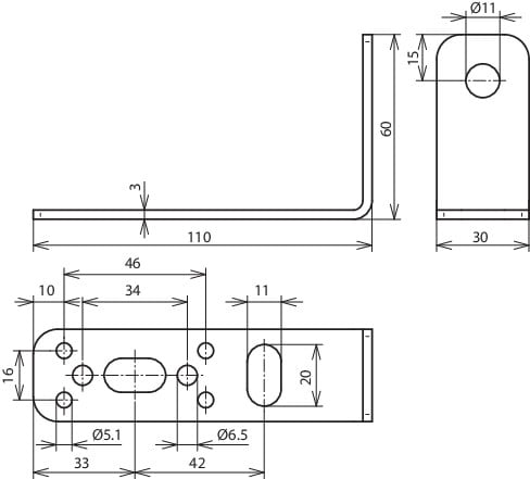 Salamasieppaustankojen D40-50 ja DEHN johtimien tukikiinnike suorakulmamalli, 11 mm reikä, StSt., Seinään asennus