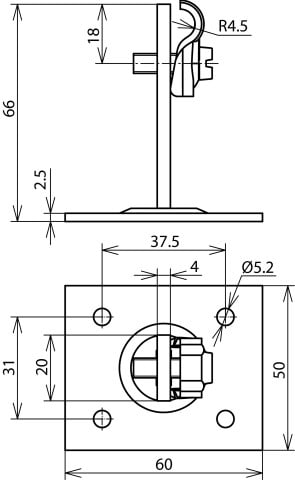 Kattojohtimen pidike DEHNQUICK St/tZn f. Rd 6-10mm kiinnityslevyllä 50x60mm