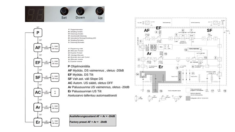 - Vahvistimen säätö elektronisesti ilman työkaluja, 7 segmentin näyttö