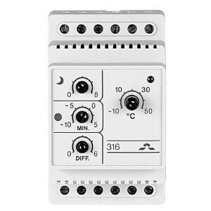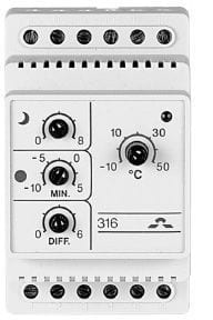 DEVIreg™ 316 on kaksirajatermostaatti. Termostaattia käytetään mm. putkistojen, räystäskourujen/syöksytorvien sekä ulkoalueiden sulanapidossa. Lämpotilan saatoalue on -10 ... +50 °C. Minimi- ja maksimilämpätilat on erikseen aseteltavissa.