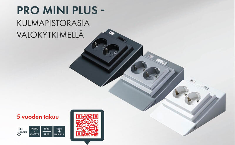 Dreamled Pro Mini Plus mattamusta on markkinoiden pienin 121x138x61mm 2-osainen, pinta-asennettava pistorasia valokatkaisijalla, joka sisältää ABB Impressivo-sähkökalusteet. Huom. Hanki erillinen Dreamled liitäntälaite. Pistorasia on Avainlipputuote ja se valmistetaan Suomessa. Pistorasialla on 5 vuoden takuu. Pistorasia tarvitsee aina oman virransyötön 3*2,5 mm2 kaapelin (230V/16A). Asennus tapahtuu yläkaapin alatasoon käyttäen mukana tulevaa V0-paloluokan asennustaustalevyä. Pro Mini Plus pistorasia valokatkaisijalla on yhteensopiva Pro Mini lisäpistorasian kanssa ja ne soveltuvat keittiöön, kodinhoitohuoneeseen tai muuhun kuivaan tilaan, IP20.