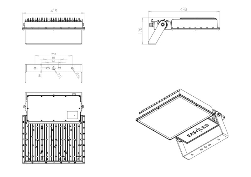 ARA 90-1050 DALI 740 UP-F 280W Easy LED ARA on kustannustehokas aluevalaisinvaihtoehto korvaamaan perinteiset monimetallivalaisimet. Painevalettuun alumiinirunkoon rakennettu valovoimainen ARA kestää vaativissakin olosuhteissa. Tukeva sanka tekee siitä helpon asentaa ja suunnata.