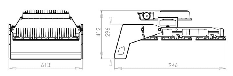 Tämä malli on kolmen (B2) valoyksikön LED-suurtehovalaisin, joka sisältää valaisimeen integroidun DALI-liitäntälaitteen.