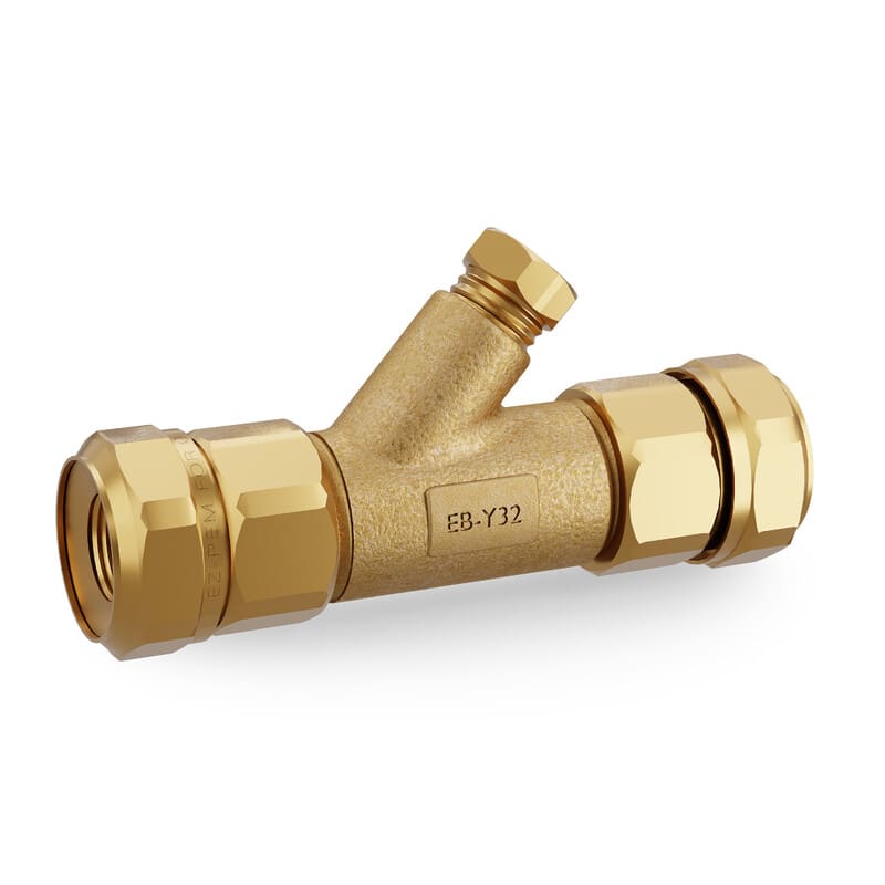 Y-liitos messinkisillä PEM-liittimillä lämmityskaapelin yhdistämiseksi esimerkiksi vesijohtoputkeen. Mukana painenippa sekä soikea tiiviste F-10/Frostvakt 10:lle.
