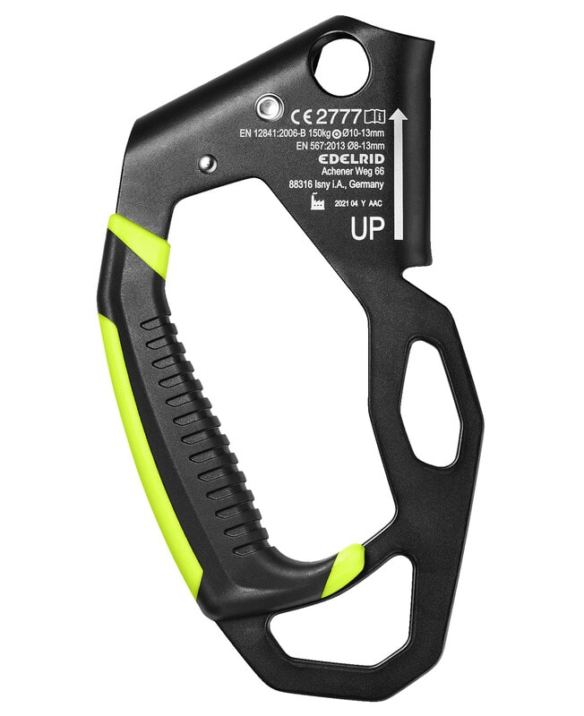 Ergonominen nousukahva, joka soveltuu tehokkaaseen köyttä pitkinnousemiseen, köyden säätämiseen, vetokahvaksi tilapäisiin taljajärjestelmiin jne. EN12841 B,EN567 Ergonominen nousukahva, joka soveltuu tehokkaaseen köyttä pitkin nousemiseen, köyden säätämiseen, vetokahvaksi tilapäisiin taljajärjestelmiin jne. Soveltuu käytettäväksi 8-13 mm halkaisijaltaan olevien standardien EN1891 ja EN 892 mukaisten ydinköysien kanssa. Maksimi työkuorma 150 kg. Taivutettu rakenne parantaa käyttömukavuutta ja vähentää järjestelmässä syntyvää kitkaa eikä taita köyttä tehden käytöstä sujuvampaa.