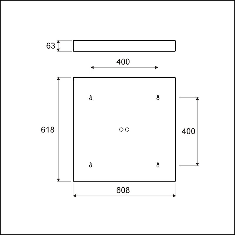 618x608x63mm teräksinen pintakotelo 595x595mm Ledpaneelille