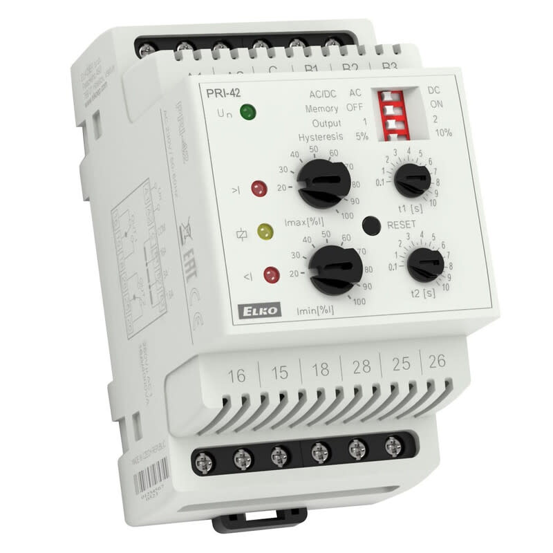 ELKO EP - Valvontarele virta - 2vk 16A 3-alue 0.4-16A hyst. 2