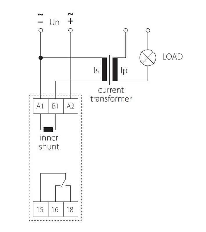 - Valvoo virran ylittämistä ylärajan (Imax) ja putoamista alarajan (Imin) alapuolelle valitun toiminnon mukaisesti.