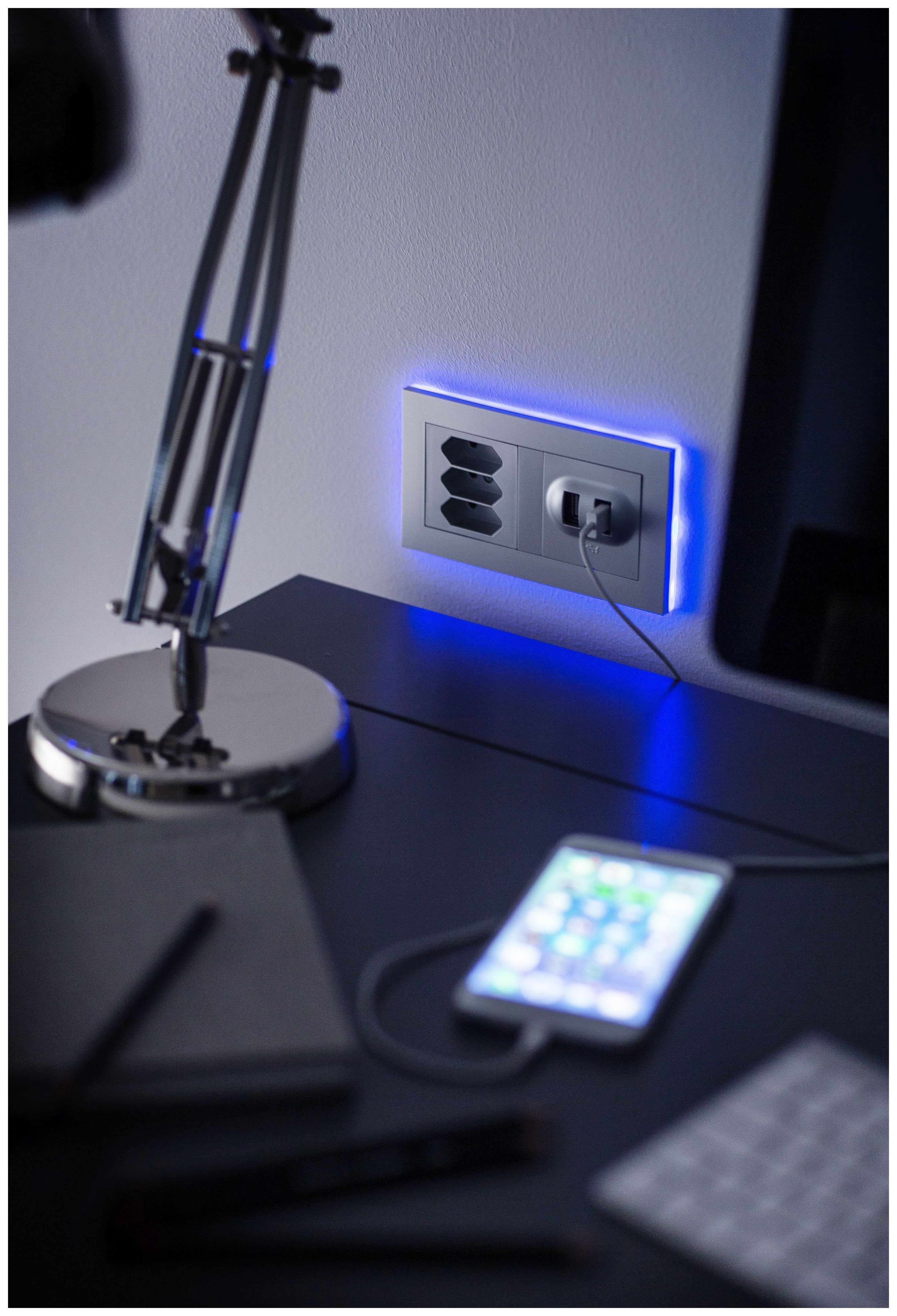- Plus-sarjan jännittävät valokehykset parantavat käytettävyyttä hämärässä. Saatavana 1- ja 2-osaisena, sekä 2-pistorasialle