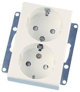 Keskiölevyllinen 2-pistorasia sopii myös erilaisiin yhdistelmiin. Saatavana on kehykset rinnakkaiseen asennukseen pystyssä (1-4), sekä vaaka-asenteinen 1x 2-pistorasia + koje (1-4).