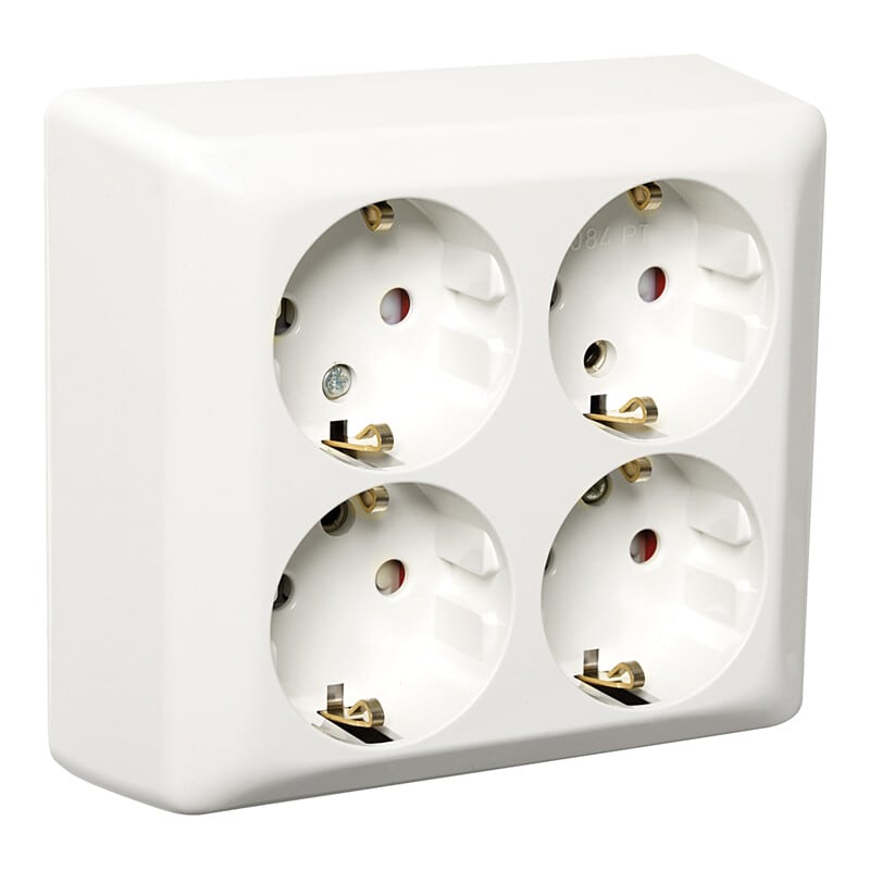 ELKO RS16 4-osainen pistorasia 16A/250V/IP21, pinta-asenteinen,peitelevyllinen, ruuviliittimet, valkoinen