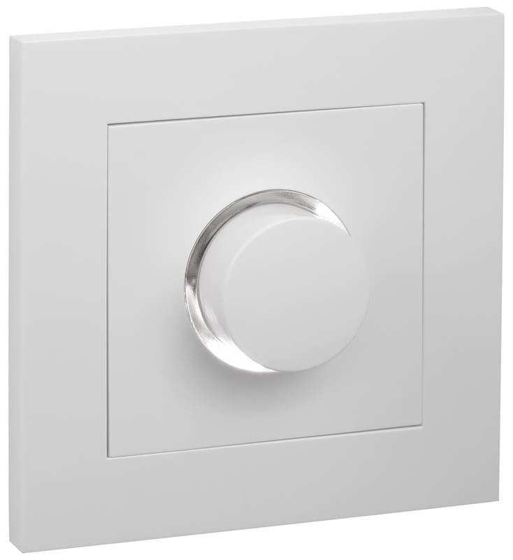 Tuotepakkaus sisältää säätimen runkoon asennettavan LED-valonlähteen sekä keskiölevyn valorenkaalla. Varsinainen säädin ei sisälly toimitukseen.