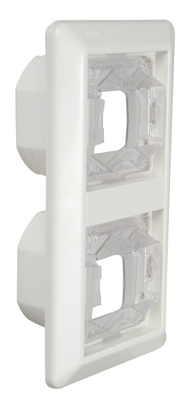 IP21 -kytkimet muutetaan kosteisiin tiloihin soveltuviksi kojesuojuksen ja IP44 -peitelevyn avulla.