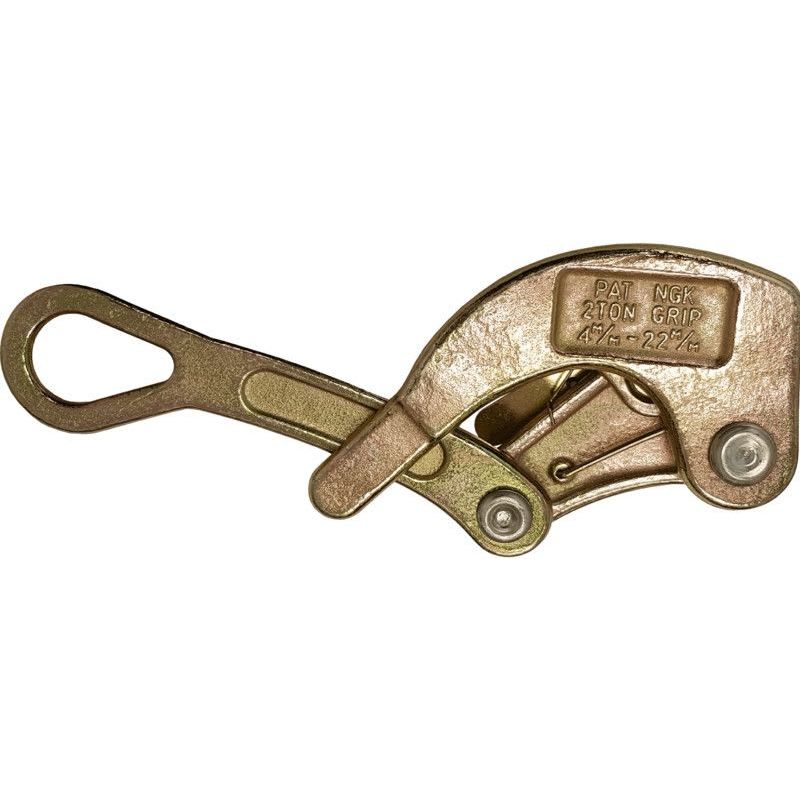 2tn 4-22mm. Leuan pituus 60mm. Paino 1,38kg. Soveltuu teräsköysille,päällystetyille johtimille, kannatinköysikaapeleille ja päällystämättömille kuparikaapeleille. Tarraimien leuka ja runko ovat molemmat varustettu hammastuksella. Ei nostoon.