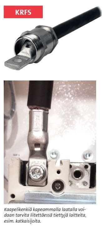 KRFS150-12 on erikoiskapea putkikaapelikenkä monisäikeiselle ja harvasäikeiselle 150 mm² kuparijohtimelle (IEC 60228), laatassa M12-reikä. KRFS150A-12 on UL-hyväksytty. Materiaali: 99,95 % Cu / tinattu (Cu/Sn).