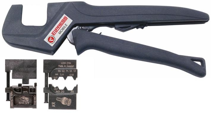 Mekaaninen puristustyökalu, jossa on vaihdettavat leuat. Mukana toimitetaan kahdet leuat: OMP45 modulaarisille RJ45-liittimille ja OCC1113 koaksiaalikontaktien RG58, RG59, RG62 ja RG71 puristamista varten. Lisäksi on erikseen tilattavissa noin 20 työkaluun sopivaa leukaa..