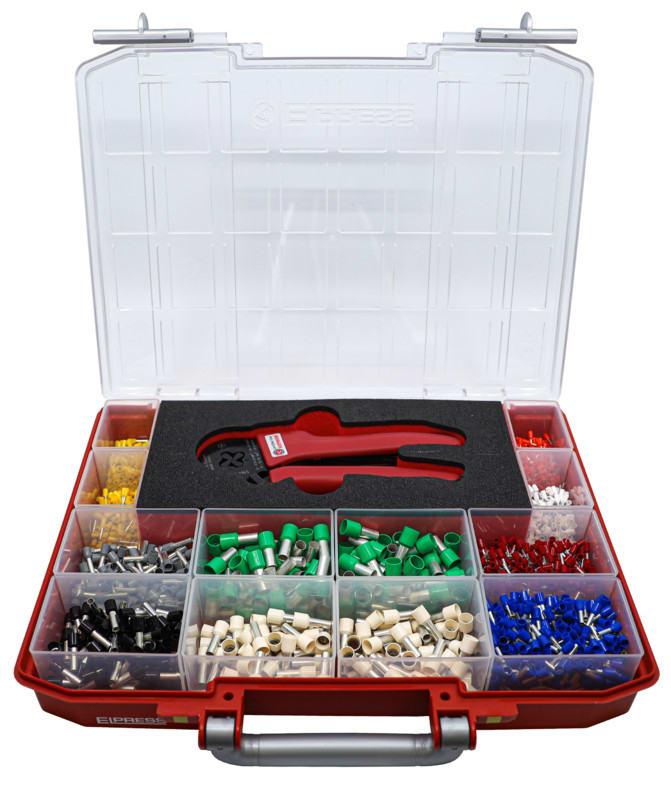 - Ammattikäyttöön tarkoitettu lajitelmalaatikko, jonka mukana toimitetaan eristetyt 1800-päätehylsyt, kuorinta-ja katkaisutyökalu SCT001 sekä puristustyökalu PEB0116H/PEB0116S.