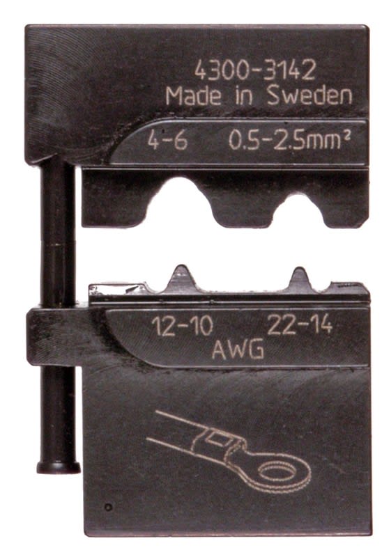 Elpress MOBILE -työkalun puristusleuka eristämättömien liitosten 0,5 - 6 mm² tuurnapuristusta varten.