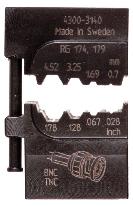 Elpress MOBILE -työkalun puristusleuka RG174, 179 -koaksiaaliliittimien puristusta varten.