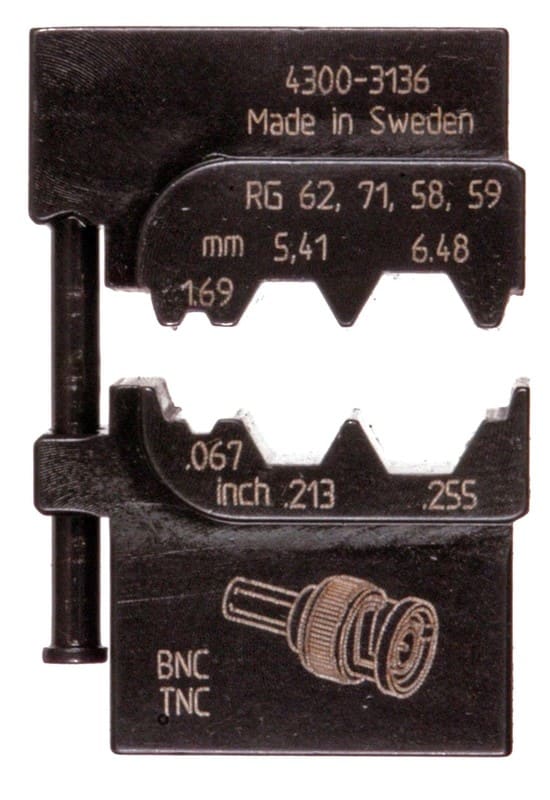 Elpress MOBILE -työkalun puristusleuka RG58, 59, 62, 71 -koaksiaaliliittimien puristusta varten.