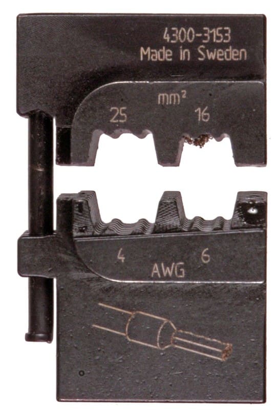 Puristusleuka päätehylsyjen 16 - 25 mm² puristusta varten.