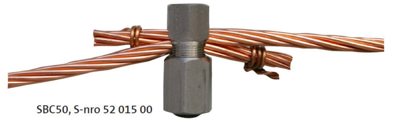 Mahdollistaa raudoituksen liittämisen harvasäikeiseen kupari- tai teräsmaadoitusköyteen. Käyttöalue: 32-100 mm², suurin yksittäisen johtimen poikkipinta-ala 50 mm².