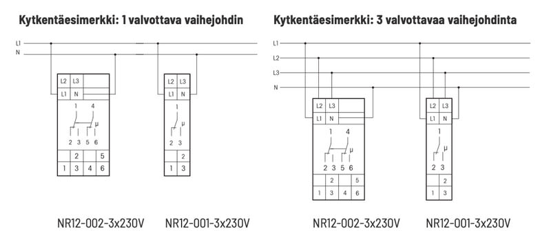 - Saatavana myös vain yhdellä CO-koskettimella, NR12-001-3X230V (Snro. 27 018 49).