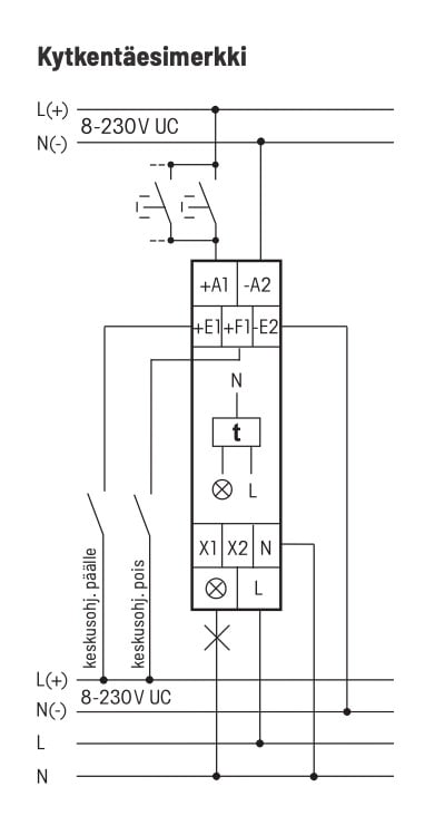Käyttö esimerkiksi himmentimenä valaistustason pudotukseen liiketunnistimien, hämäräkytkimien tai kellokytkimien kanssa. Valittavissa myös useita erilaisia toimintoja, kuten työvirtarele/impulssirele, päälle-/poiskytkentäviive, tauko-/käyntiaika ja pulssitoimintoja.