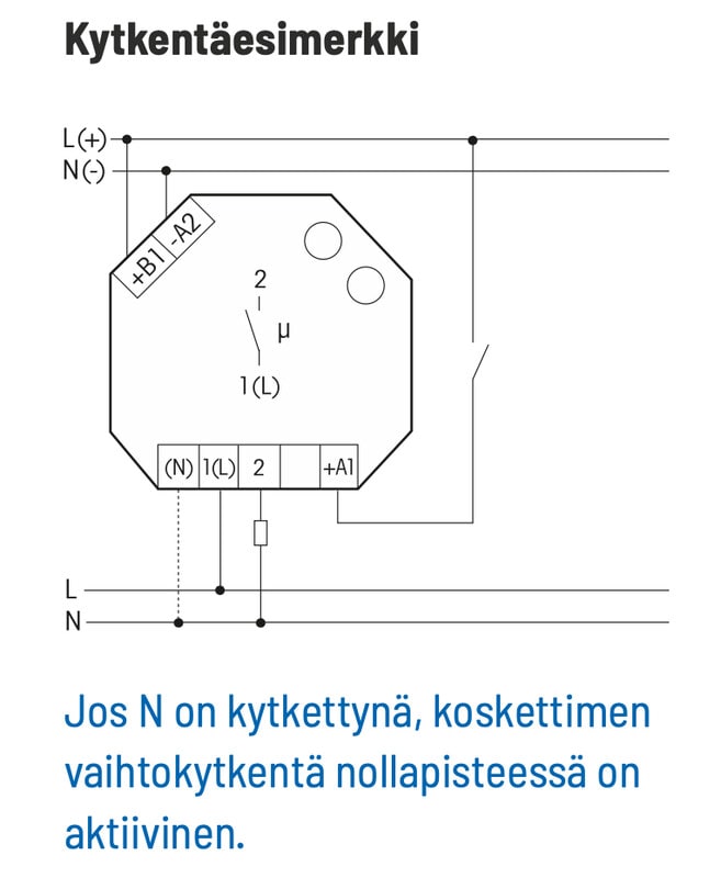 - Yleinen ohjausjännite 12-230V AC/DC. Ohjausjännite on sama kuin käyttöjännite.