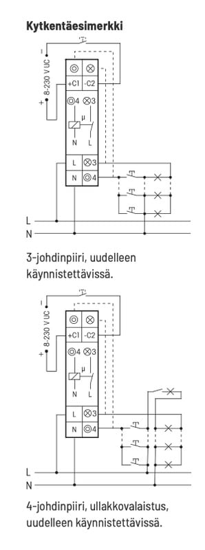 - 3-johdin- ja 4-johdinpiirit, uudelleen käynnistettävissä, ullakkovalaistus käytettävissä jos 4-johdinpiiri.