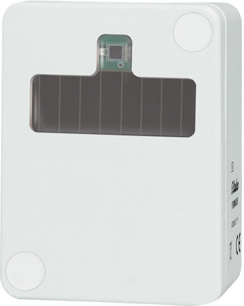 Langaton hämäräkytkin, aurinkokennolla ja paristolla (pariston käyttöikä 5-8 vuotta). Soveltuu sisä- sekä ulkokäyttöön. Pituus 60mm, leveys 46mm, korkeus 30mm. Puhtaan valkoinen. IP54.