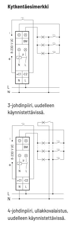 - Ohjausjännite 230V ja/tai 8-230V UC.
