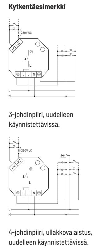- 3-johdin- ja 4-johdinpiirit, uudelleen käynnistettävissä, ullakkovalaistus käytettävissä jos 4-johdinpiiri.