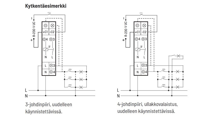 - 3-johdin- ja 4-johdinpiirit, uudelleen käynnistettävissä, ullakkovalaistus käytettävissä jos 4-johdinpiiri.