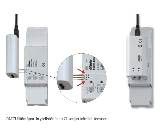 Eltakon ilmaista PCT14-ohjelmistoa käyttämällä, data voidaan siirtää toimilaitteesta tietokoneelle tai toisinpäin. Lisäksi DAT71 voidaan käyttää tiedon tallentamiseen. DAT71 on kytkettävä toimilaitteeseen ja liitettävä PC:hen USB-kaapelilla (kaapeli ei sisälly toimitukseen).