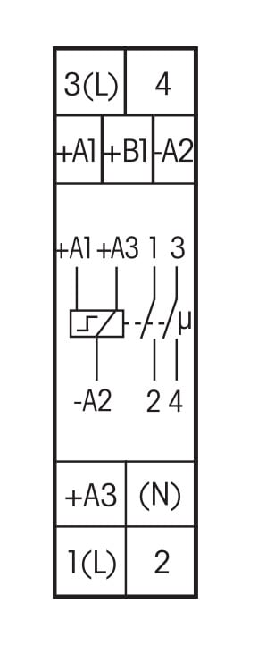 - Patentoidun Eltako Duplex -tekniikan (DX) avulla, normaalisti potentiaalivapaat koskettimet voidaan silti kytkeä nollapisteessä 230V AC 50Hz ja vähentää siten merkittävästi niiden kulumista. Liitä tätä varten yksinkertaisesti nollajohdin liittimeen (N) ja L liittimeen 1(L) ja/tai 3(L). Virrankulutus valmiustilassa kasvaa tällöin vain 0,1W.