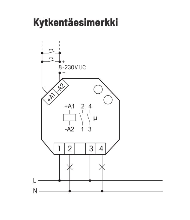 - Releen kosketin voi olla käyttöönotettaessa auki tai kiinni, se synkronoidaan ensimmäisen käytön yhteydessä.