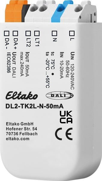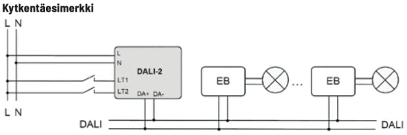 DL2-TK2L toimii yleismoduulina DALI-yhteensopivien valojen ohjaamiseen. Kytkentätulon toiminta voidaan asettaa yksilöllisesti.