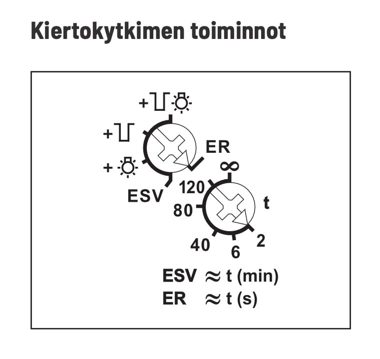 - Releen LED-valo välähtää aina kun kiertokytkin vaihtaa asetusalueelta toiselle, tämä auttaa löytämään oikean kiertokytkimen asennon varmasti.