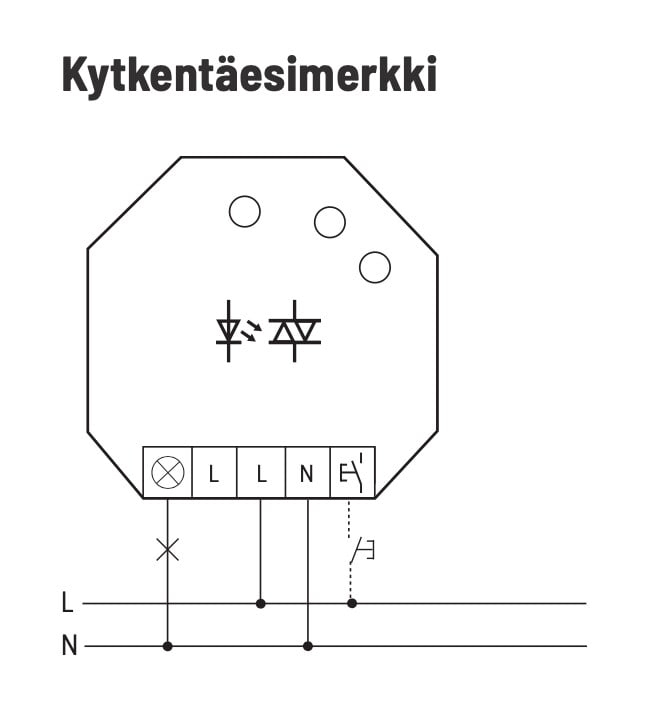 - Releen LED-valo palaa jatkuvasti kun rele on kytketty päälle.