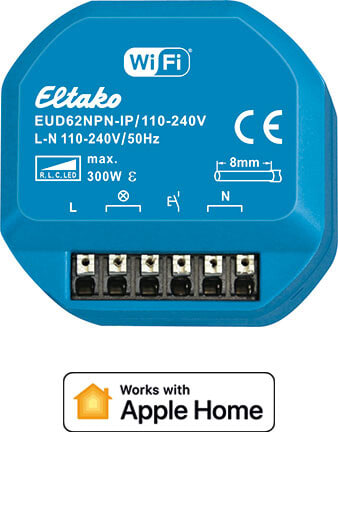 Ohjaa himmennintä Apple-home sovelluksen avulla ja/tai millä tahansa jousipalautteisella painonapilla. Eltako Connect-appilla voit muuttaa laitteen asetuksia ja konfigurointia, kuten valaistuksen minimi- ja maksimitasoa sekä tarvittaessa himmennyskäyrää.