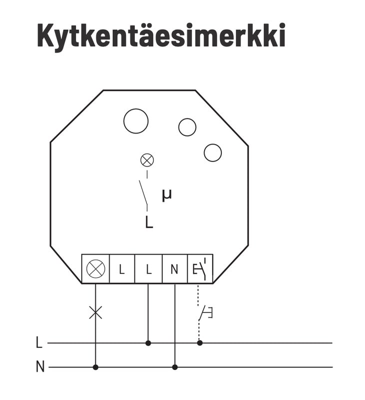 - Relettä voidaan ohjata myös millä tahansa johdotetulla perinteisellä kytkimellä tai jousipalautteisella painikkeella