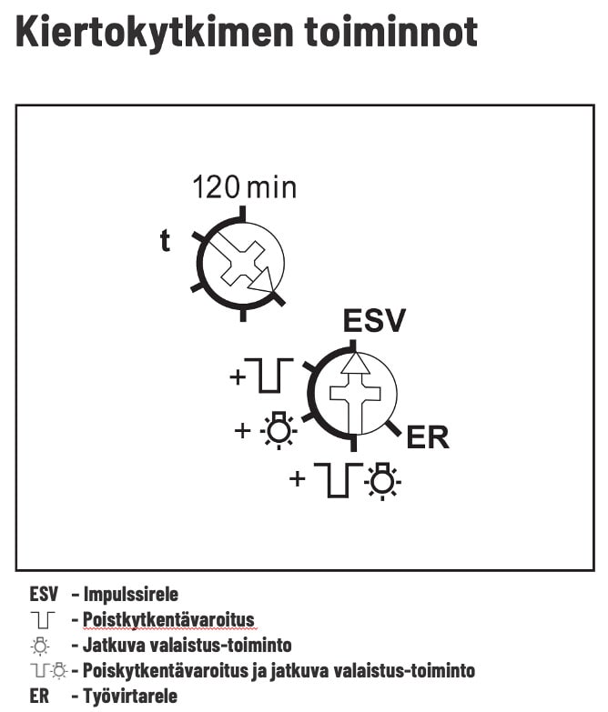 - Säädettävä toiminta-aika 120 minuuttiin asti toiminnossa ESV.