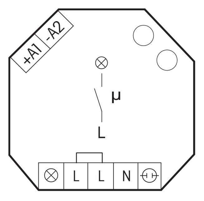 Myös tavanomainen reletoiminto ER on valittavissa. Jos ER valitaan, kytkimen merkkivalon virta ei ole sallittu. Vain ohjaustuloa A1-A2 tulee silloin käyttää.