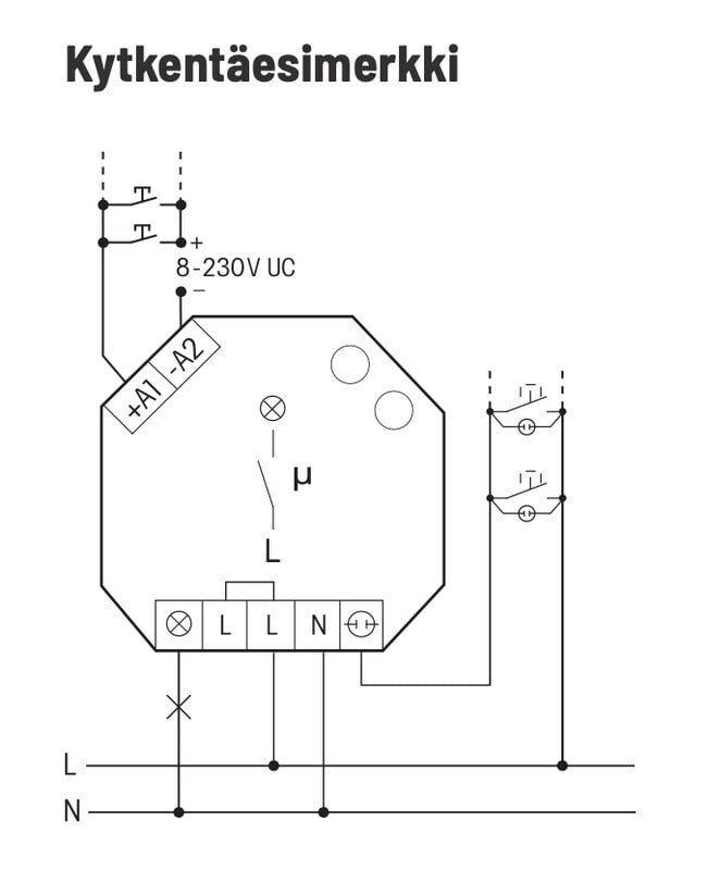 - Releen kosketin voi olla käyttöönotettaessa auki tai kiinni. Se synkronoidaan ensimmäisen käytön yhteydessä.